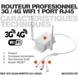 Kit composé de 3 caméras pilotables solaires IP Wi-Fi UHD 2K et d'un routeur 3G/4G industriel, idéal pour surveiller une maison, un bâtiment ou une résidence secondaire ou il n'y a pas de connexion par box internet.