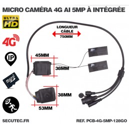 Micro caméra IP 4G ultra HD 5 Mpx à intégrer, enregistrement audio vidéo à la détection de mouvement, détection humaine, détection audio, et en continu sur carte micro SDHC jusqu'à 128Go incluse, accès a distance depuis un smartphone / Tablette (iPhone) iOS / Android et logiciel PC, alerte par notification push sur appareil mobile, écoute à distance, envoi d'email et upload sur FTP en cas d'alerte, alimentation DC 12V 2A