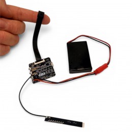 La caméra, d’une taille extrêmement réduite de 10 × 10 × 10 mm, est reliée au module par une nappe électronique de 8 cm, permettant une intégration très discrète.