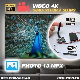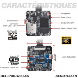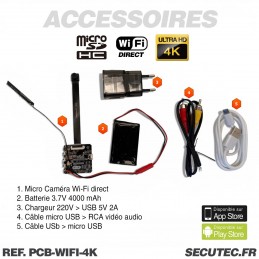 Micro caméra Ultra HD 4K équipée d’un capteur Sony 13 MP, du Wi-Fi direct et d’une batterie 4000 mAh offrant jusqu’à 4 heures d’autonomie en enregistrement continu. Compatible microSD jusqu’à 256 Go.