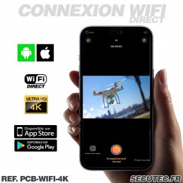 La connexion Wi-Fi direct permet un pilotage à distance via application mobile (iOS et Android), avec visualisation en direct, partage des fichiers et configuration complète.