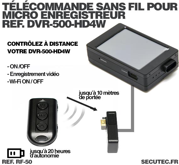 La télécommande radio de ref. RF-50 est compatible avec l’enregistreur de réf. DVRW-500N-PRO.